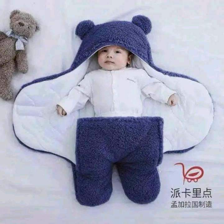 Baby Swaddle Blanket with Hood & Bear Ears – Soft Fleece Newborn Sleeping Bag, Warm Infant Wrap for Winter